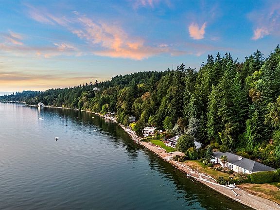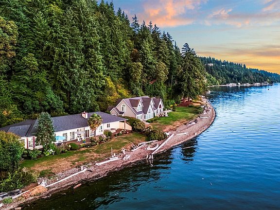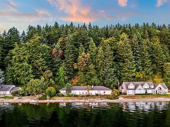 Lovely Rambler right on the beach in Fox Island. 150' of low bank waterfront with tidelands rights. Walk into the foyer opening up to a stunning great room with soaring vaulted cielings and 180 degree views of the sound. Dining area and wet bar for entertaining. Eating area off kitchen to enjoy your quiet mornings with a view. Living space with full built ins offers a cozy retreat. Primary bedroom features a fireplace with continued vaulting ceilings. 5 piece primary bath with large walk in closet. Step out onto a deck that runs the length of the house and enjoy stellar sunsets. Walk right onto the beach from your own home. Enjoy the beauty that the pacific Northwest offers right off your back yard! Newer Roof, furnace, and water heater.