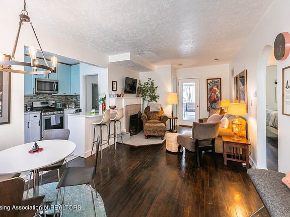 Step inside to charming arched doorways and timeless character throughout! Gleaming hardwood floors lead you into a warm and welcoming living room, highlighted by a fireplace with a classic tile surround. The kitchen opens seamlessly with a breakfast bar and stainless steel appliances—perfect for everyday living or entertaining. A spacious 3-seasons room just off the main living area offers the perfect spot to relax and enjoy the outdoors in comfort. Two main-level bedrooms feature generous closet space with built-in organizers, while a bright full bathroom completes the level. Upstairs is a true retreat—a spacious bedroom that easily accommodates multiple beds or makes a fantastic lounge, game, or flex space. Outside, enjoy cozy evenings by the backyard firepit and the convenience of an attached garage. *Newer furnace, water heater, roof and A/C!*
