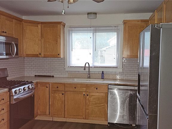 This lovely three bedroom, one bathroom home has a floorplan with a smooth flow. The updated kitchen includes matching stainless appliances, updated cabinets (with plenty of storage), and Corian countertops. A sink and new bathtub are awaiting installation. Easy maintenance flooring has been installed through the main floor. The enclosed three season porch runs the width of the home. The back yard is enclosed with fencing and has a shed for extra storage. The basement is extra space that can be finished. There are updated windows throughout. The exterior boasts a metal roof and vinyl siding.