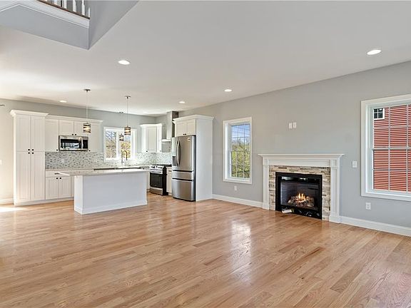 Best View in Development of the Blackstone River. There are only a few left!! Move Right In! This stunning 3 bed 2.5 bath colonial new construction home with it's open floor plan seamlessly flows from it's fortress like foyer with 18' ceiling & chandelier, to it's custom built kitchen boasting a large center island, quartz countertops, high end appliances, stainless steel farmers sink with loads of cabinets space. Featuring over 25+ extra long windows and 9' ceilings allowing in the perfect amount of natural sunlight making this space feel warm and welcoming. Gas tiled fireplace, oak hardwood flooring throughout, tons of recessed lighting, 2nd floor laundry room, master ensuite with an expansive walk in closet. Master bath featuring double vanity and large tiled walk in shower. Easy to finish basement with full sized windows and glass sliding door walkout on a little over 10,000 square foot beautifully manicured lot and so much more. A Must See!!!!