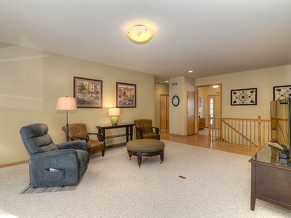 Exceptional Value in this gorgeous brick and vinyl ranch home in the maintenance free community of Madison Homes! Gorgeous, open floorplan with 9 foot ceilings. Gourmet kitchen with 42" cabinets, under cabinet lighting and crown moulding, quartz countertops, peninsula with breakfast bar, black stainless steel LG appliances (2022), glass subway tiled backsplash and touch faucet. Huge eating area with sliding glass doors lead to your beautiful yard complimented with a deck, retractable awning, mature trees and professional landscaping. Butler's pantry with quartz countertop is adjacent to the formal dining room. Master Bedroom Suite includes a walk-in closet with closet storage shelving system and double sink vanity. A pocket door separates the awesome, huge bath with whirlpool tub, palladium window, separate shower and linen closet. The split 3 bedroom floor plan offers privacy. 2nd full bathroom with a linen closet. 1st floor laundry room with Kenmore washer & dryer (2016), utility sink, closet, cabinetry and countertop. Recessed lighting in the living room, kitchen, butler pantry, hall and master bath. Ceramic tile in the kitchen, bathrooms, foyer & laundry room. English basement with 9 foot ceilings. New Carrier A/C and Furnace (2025), radon mitigation system, 2 sump pumps. Newer roof (2022). Freshly cleaned carpeting. Enjoy a carefree lifestyle and we look forward to welcoming you to your new home!