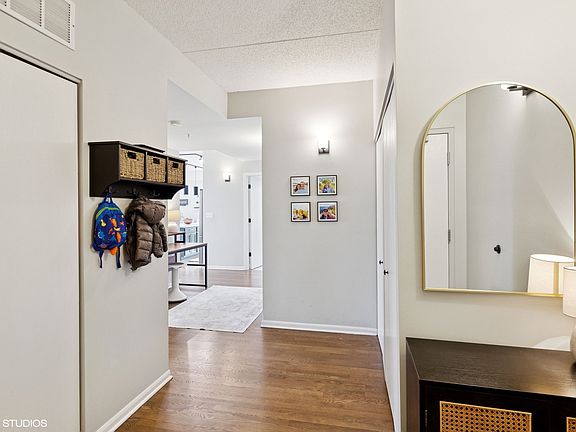 Enjoy stunning lake and city views from this bright, 7th-floor corner condo in the heart of South Evanston. Situated in one of the area's most vibrant neighborhoods (Main-Dempster Mile), you'll have everything you need just steps away - Sketchbook Brewery, Trader Joe's, boutiques, coffee shops, highly rated restaurants, the lakefront, the NU shuttle and the Metra and EL stations. This spacious 2-bedroom, 2-bathroom unit boasts a sun-drenched, open-concept layout with gleaming hardwood floors throughout the living area. Large foyer entry with great storage and space for your work-from-home desk. The modern kitchen features a breakfast bar island, quartz counter tops, stainless steel appliances and flows seamlessly into the dining and living areas, where a cozy fireplace awaits. Sliding doors open to a large balcony, offering sweeping views of the lake and city skyline. The oversized primary bedroom includes a generous walk-in closet and a private en-suite bath with a tub, separate shower, and dual vanity sinks. The second bedroom is bathed in warm southern light, offers a sizable closet and is conveniently located near the updated hall full bath. Additional amenities include an in-unit washer and dryer, central air, elevator building, attached deeded garage parking, and storage. Yes, Fido is welcome in this pet-friendly building. The monthly assessments include heat, water, Wi-Fi/internet, cable TV, parking, trash removal, insurance, snow removal, and maintenance of common areas. Updated, inviting and located in a highly desirable walk-to community, you won't want to miss this one - Love where you live!