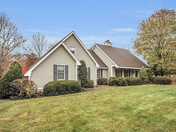 New Price! Welcome to this one-owner, meticulously maintained, expanded Cape style home. Featuring the primary bedroom with its own private bath ensuite on the 1st floor. Eat-in kitchen with built-in pantry closets. Open concept to the living room with a wood fireplace, hardwood floors and two sets of French doors that bring you out to the back deck. Formal dining room with hardwood floors and a living room/office den with a wood fireplace. 2nd floor features brand new carpeting with 3 large bedrooms, an open concept bonus room and a full bathroom. 2 car attached garage with direct entry into a large mudroom with a large closet and the laundry room. Half bath on the first floor off of the kitchen. This home features central A/C, central vac, recessed lighting, and tons of great closet space. Home sits on a private, level, landscaped lot. Pride of ownership shines throughout this home.
