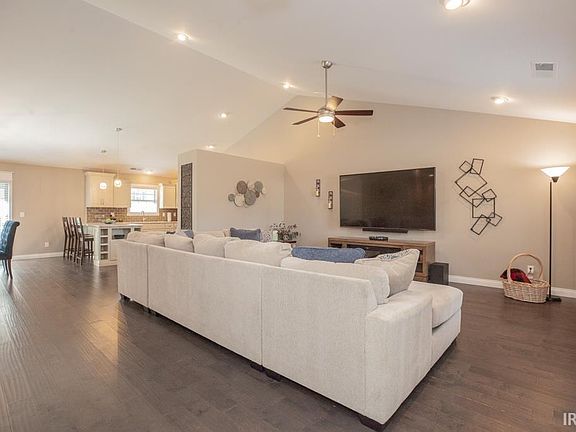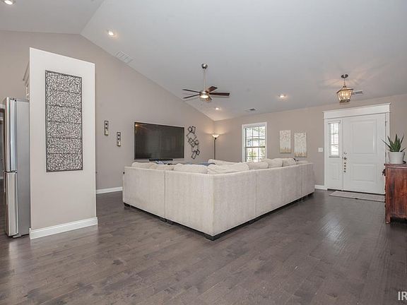 Welcome to your new home! This 4 bedroom ranch home located on the North side of Evansville offers everything the modern buyer wants. Upon entering you are greeted with a spacious open floor plan with vaulted smooth ceilings and views to the fully vinyl fenced back yard and patio. The floor plan offers a split design with primary bedroom bedroom offers trey ceilings, walk-in closet, on suite bath featuring double vanity with granite countertops and spacious walk in tile shower and generous linen closet. Located off the primary bedroom you will find 2 additional bedrooms and full bath with double vanity and granite tops. Additionally, there is a 4th bedroom on the opposite end of the floor plan. The kitchen boats stainless appliances, white castled cabinetry with pull out shelving, bar area and grey subway tiled back splash. Off the kitchen is a large separate laundry room with room for washer and dryer AND separate refrigerator. Seller have added some touches with custom blinds, vinyl fencing, buried downspouts, 10x16 yard barn with custom ramp and steps and 2 loft areas for increased storage, expanded the concrete patio perfect for entertaining and outside lighting that really highlights the home at night. Property has been pre-inspected by NISI and ready to move right in.