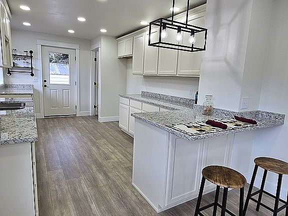 The main floor of this completely remodeled home is comprised of 3 bedrooms and 2 bathrooms. An elegant, but functional living room and dining room area is surrounded by almost a dozen picture windows giving an abundance of natural light with 180 degree views. Beautiful coffered ceilings and detailed window casings throughout this area more than enhance the natural beauty of this home. The shining star of the 1,470 sqft main floor is the beautiful kitchen detailed in large picture windows, custom cabinets, a sitting bar and gorgeous granite countertops. While being beautiful to look at, the kitchen is extremely functional and friendly to have multiple cooks in the same area. An abundance of energy efficient and dimmable LED lights throughout the home brings out the beautiful interior paint done in Swiss mocha with bright white trim. Beautiful anytime of the day or night!