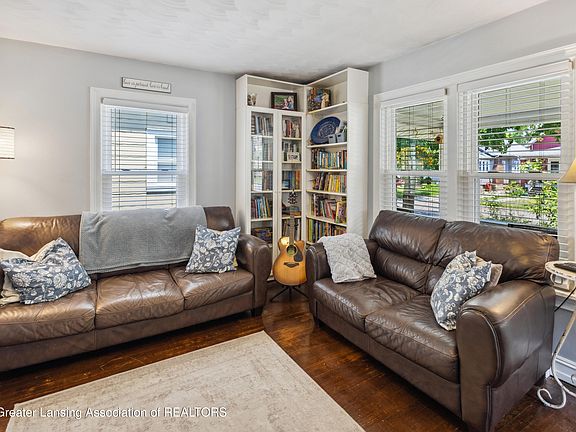 HIGHEST AND BEST OFFERS DUE BY SUNDAY 6/15 AT 8PM. Tucked into the heart of Eastside, this move-in ready home is equal parts charm and practicality. You'll love the location—bike to MSU's campus or downtown, or enjoy a quick walk to Michigan Avenue's shops, restaurants, and bars. Inside, the oak hardwood floors add warmth and character to the spacious living room and formal dining area. The kitchen has been thoughtfully updated with white cabinetry, fresh countertops, and durable new flooring. The main-floor primary bedroom includes an attached half bath with newer finishes: updated flooring, a sleek vanity, and classic subway tile. (Bonus: laundry hookups available on the main level to give you one-level living options) Upstairs, you'll find two more bedrooms and a full bath - which give you flexible living options. Additional highlights include a full basement with a waterproofing system, a detached garage, and a backyard that checks all the boxes: patio, fenced-in yard, and space to enjoy Michigan's summers.