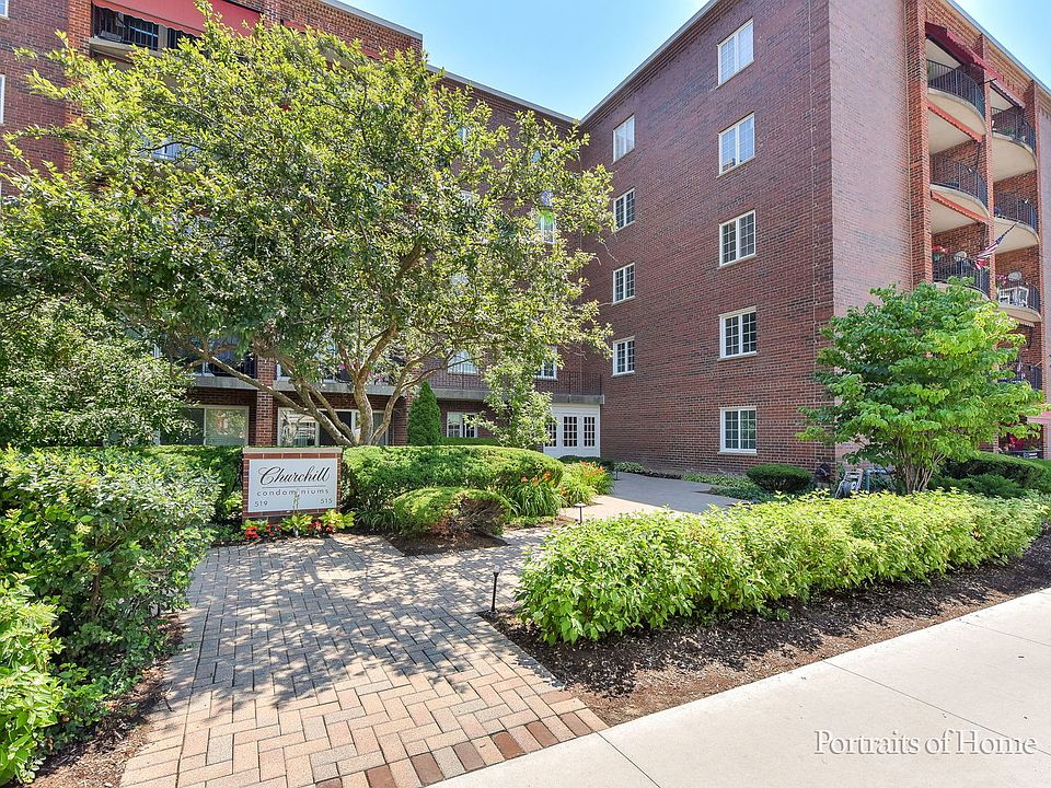 Beautifully updated and meticulously maintained corner unit in the coveted and newly renovated Churchill Condominiums, located in the heart of vibrant downtown Glen Ellyn. Positioned on the highly desirable North side of the train tracks, this second-floor condo offers both charm and convenience, with abundant natural light, a spacious living and dining area, and custom built-in bookshelves for added character. Churchill Condominiums consider this floorplan as a 2bed/1bath unit, however the 2nd bedroom is currently used as an office. Remodeled in 2020, the home features premium laminate plank flooring, cozy carpeting in the bedrooms, an updated HVAC system, and a full suite of stainless-steel appliances. The kitchen includes a pantry closet and generous cabinet space. The primary bedroom offers a full wall-length closet, and both bedrooms provide lovely views of the historic Civic Center. Freshly painted in May 2025, the unit also includes a private 13x6 balcony, one assigned parking space in the heated garage (with bike racks), additional outdoor parking on the back deck to accommodate another vehicle, and a large, conveniently located storage closet in the basement. With a shared immaculately kept laundry facility, you can relax and enjoy the quiet folding/library nook while you wait. The building is dog and cat friendly, welcoming your four-legged companions. Enjoy an unbeatable location just steps from shops, restaurants, train station, Prairie Path, Lake Ellyn, and more. During the holiday season, savor the festive lights and decorations along Main Street. Truly unbelievable!