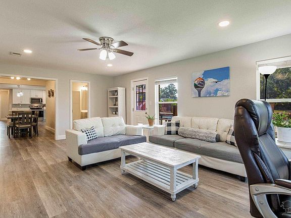 Nestled on an ACRE with a pond and a sparkling INGROUND VINYL POOL, this inviting residence is ready for new homeowners in a prime location. You’ll be charmed by the home’s curb appeal from the moment you arrive, featuring a well-maintained exterior, a two-car garage, and a welcoming front porch. Step inside and immerse yourself in the open-concept floorplan seamlessly connecting the living room, dining area, and kitchen. All boast LVP (Luxury Vinyl Plank) flooring throughout—NO CARPET! The kitchen is a delight, offering cabinet space, quartz countertops, stainless steel appliances, a spacious island, a pantry, and a bar area with a mini fridge! The primary bedroom, conveniently located just off the foyer, easily accommodates a king-sized bed. The ensuite bathroom has quartz countertops, LVP floors, a storage closet, and a tiled walk-in shower—your perfect place to unwind. Down the hallway, off the kitchen, two additional bedrooms share a full bathroom featuring a tub/shower combo and single vanity, ideal for guests or the gang. Are you looking for more space? A second living area provides plenty of room for a cozy couch or your favorite furniture piece. This room also has a hall bath that is great for when friends visit. This area leads to both the garage and the back deck. Speaking of the garage—its floors are freshly painted, and it also provides extra storage for your holiday decor! Step outside to the screened-in porch or stained back deck and prepare to be wowed by the stunning pool. The yard, with its pond and expansive cleared area, is a dream for outdoor activities. With two fenced sections, it’s perfect for pets. You’ll even find a handy storage shed for gardening tools and extra parking space for an RV. Don’t miss the chance to make this charming house your home! Your future sanctuary awaits.