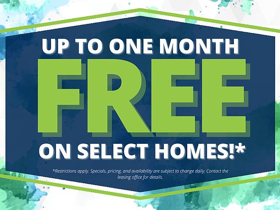 - Special offer! Up to One Month Free on select homes! *Restrictions apply. Specials, pricing, and availability are subject to change daily. Contact the leasing office for details.