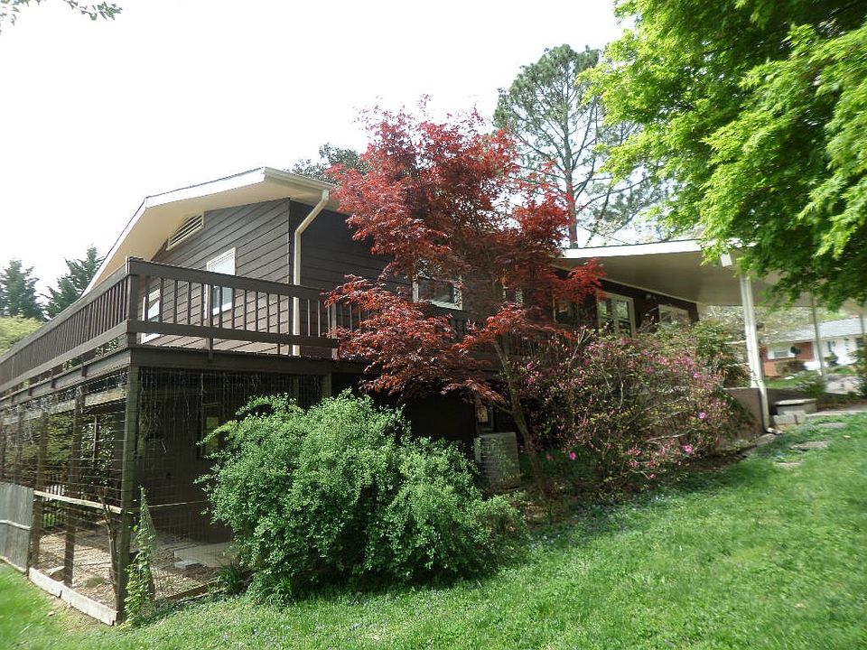 This one lives large with cathedral ceilings and an open floor plan. Long time owners took great care of this home and made major improvements such as vinyl replacement windows and a 1 year new roof. Living room is 18x13, is open to the dining room and has a stacked stone fireplace, large windows and built in shelves. Two closets in the owner's suite and the master bath has a shower. Hall bath has an updated vanity and fixtures. Efficient kitchen has double ovens and door to the carport. Lower level is 26x20 rec room and office, both with new carpet. Rec room has a fireplace and there are built in shelves in the office. The 39 foot deck offers a view of the back yard. Beautiful .62 acre home site with flowering trees and mature landscaping. See pictures for the rest of the story.