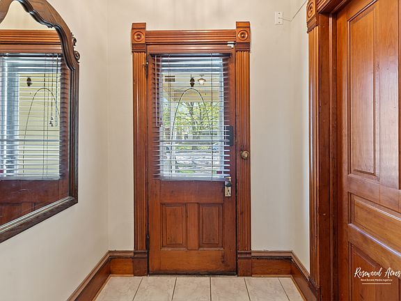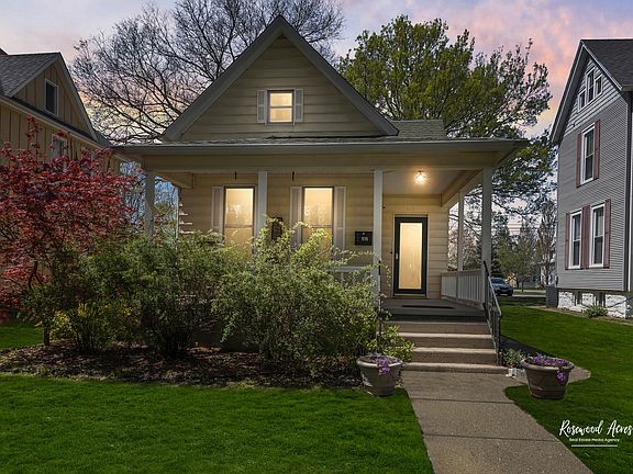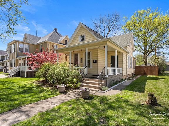 Step back in time and embrace the timeless charm of this exquisite 1904 Bungalow, gracefully nestled on a tranquil tree-lined street. Boasting a harmonious blend of modern updates and vintage allure, this home invites you to experience a truly enchanting living experience. The heart of this residence is the updated kitchen, adorned with butcher block counters, a chic tile backsplash, and the convenience of above-cabinet lighting. Equipped with LG ThinQ series smart appliances and a beverage chiller, this space effortlessly combines style with functionality. Step outside to discover the fully privacy-fenced backyard, a verdant oasis accented by mature trees and meticulously updated landscaping. Enjoy the convenience of a carport with a garage door and opener, providing easy access via the alley, alongside a detached garage offering additional parking & storage space. Original features abound throughout the home, from gleaming hardwood floors to intricate door and window molding, exuding timeless elegance at every turn. Stay cozy during winter months with the radiator heating system while savoring the cool comfort of ceiling fans and a window A/C unit in the master bedroom. Relax and unwind on the inviting front porch. The spacious attic space accessed by separate stairs, offers endless possibilities for expansion or storage. Additional highlights include an updated bathroom, high ceilings, wood blinds, and a partially unfinished basement. Conveniently located just one block from the Historic District and the Kankakee Rriver, indulge in the charm of small-town living while enjoying easy access to local amenities, including the Farmer's Market, Restaurants, and Coffee shops that are just a leisurely stroll away. Experience the epitome of timeless elegance and modern comfort - schedule your showing today and make this captivating bungalow your own.