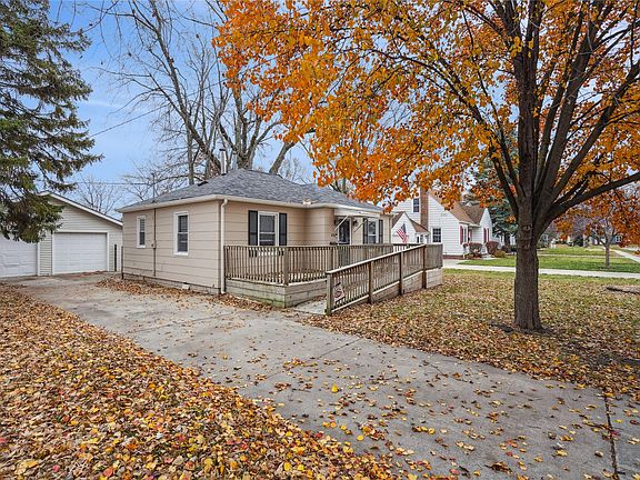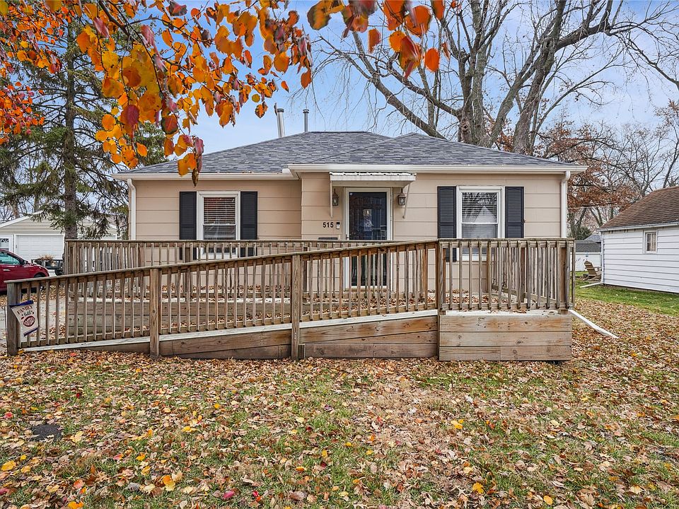 If you've been wanting to live on one of the cutest streets in Ankeny, here's your chance! This charming 2 bed, 1 bath home is perfect for easy, low-maintenance living. The home and the oversized 2-car garage both have NEW ROOFS, and the interior/exterior have newer paint. Enjoy a welcoming front porch with ramp access, hardwood floors in the living room, and an updated kitchen with newer cabinets, countertops, tiled backsplash, and included appliances. Both bedrooms are nicely sized with newer ceiling fans, and the full bath has an updated tiled shower. Laundry is just off the kitchen and leads to the freshly stained deck with built-in seating. Vinyl windows, storm doors, and a flat, easy-care yard with perennials add to the appeal. Fantastic neighborhood with mature trees and wonderful neighbors? Come take a look!
