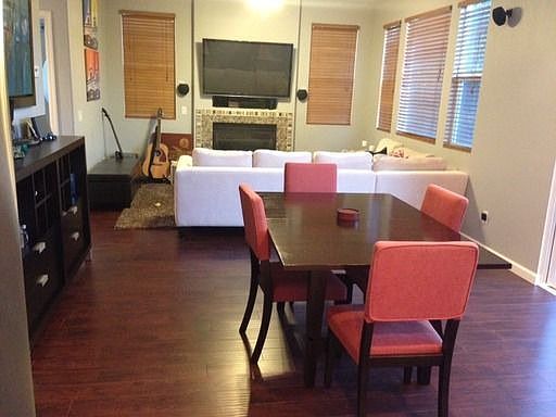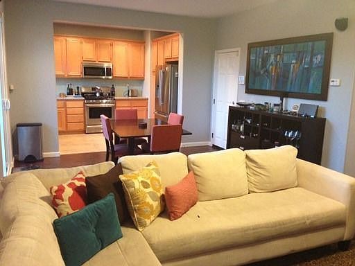 Updated home with laminate floors, new carpeting in bedrooms, quartz kitchen countertops, stainless steel Bosch appliances, glass tile backsplash, fresh paint.