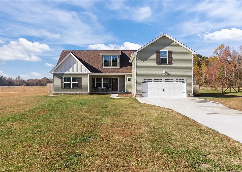 Beautiful 2023-built ranch on 2 acres in Camden! This modern home offers an open, split floor plan filled with natural light and stylish finishes throughout. Enjoy upgraded LVP flooring, crown molding, and a spacious great room perfect for entertaining. The kitchen boasts granite counter tops, stainless steel appliances, and abundant cabinetry. Large room over the garage includes a full bath—ideal for guests or a flex space. Relax on the back patio overlooking the fenced yard, with plenty of room to garden, play, or simply unwind and enjoy those NC sunsets. Includes mud room and 2-car garage. NC license: 274141