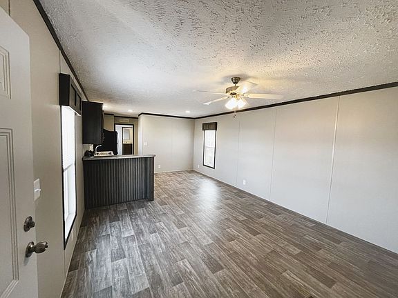 The modern kitchen comes equipped with essential appliances, including a stove, refrigerator, and dishwasher, making move-in a breeze. The home sits on a spacious lot within a welcoming, pet-friendly community, where lot rent is just $495/month.