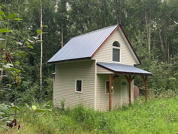 2 Story 1 bedroom 1 bathroom vinyl sided Cabin with covered front deck on over 9 acres heavily wooded in birch and aspen trees. Downstairs is the Kitchen nook and sitting area, closet, Monitor/Toyo style heater, and the Utility room that holds the water storage tank, water pump with pressure tank and the water heater. Upstairs is the Bedroom with Cathedral Ceiling and Bathroom with Shower. Cabin is close to the Two Rivers School, Ski, Mushing and Hiking Trails. Property has several possibilities with room for your garden, horses or dog team. Buyer lost their Loan Approval, New As-Built & Septic Inspection Completed. Back on the Market & Ready for a fast transaction.
