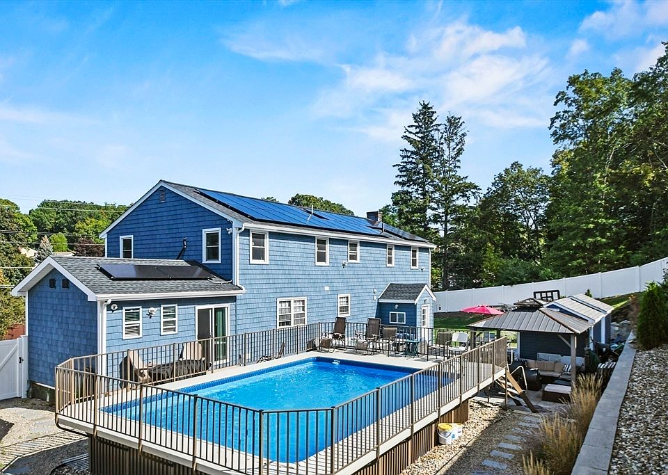 Wood-burning fireplaceHome officeBack patioLarge patioAbove-ground poolFamily roomFully fenced-in backyard
