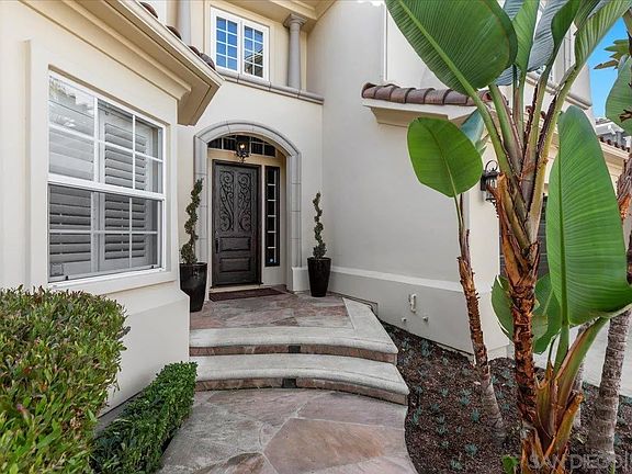Encinitas Ranch Coastal Estate — Luxury, Privacy & Ocean Breezes in this stunning 5BR, 4.5BA estate set in one of Encinitas’s most coveted golf course and ocean-view communities. Just two miles from one of Southern California’s best beaches and within the top-ranked Enc./San Dieguito School District, this home offers the ideal blend of coastal living and refined comfort. Situated on a private 1/4 acre cul-de-sac key lot, the property borders open space and provides room for an ADU or pool. Automatic wrought-iron gates open to a long, private driveway. The water-wise botanical grounds feature mature succulents and sculptural plantings, creating a serene, low-maintenance retreat. Inside, craftsmanship and style shine with African Sapele hardwood floors, crown molding, custom drapery, and Restoration Hardware lighting. The great room is anchored by a dramatic 15-ft reclaimed barn-wood mantel and designer iron fireplace. The remodeled chef’s kitchen includes Thermador appliances, a SubZero wine/beverage center, marble countertops, custom cabinetry, and a coffee & scotch bar. Additional amenities include a private home theater with surround sound and popcorn bar, plus a fitness room. The primary suite features a fireplace, retreat room, and ocean-view deck. The spa-inspired bath offers a freestanding soaking tub, marble-tiled surfaces, and backlit mirrors. Outdoor living excels with an open-air theater, grand fireplace, and multiple sitting areas ideal for coastal evenings. PV solar system, and Tesla Charger. Seller is offering rate buy down incentive or closing cost credits. Encinitas Ranch Coastal Estate – Golf Course & Ocean View Community Gorgeous five-bedroom, four-and-a-half-bath Concordia home in the highly sought-after Encinitas Ranch community — a prestigious golf course and ocean-view neighborhood located within one mile of Moonlight Beach and in the top-ranked San Dieguito Union High School District (#3 of 466 in California and #17 of 10,394 nationally, according to Niche). Situated on a private cul-de-sac key lot spanning over one-quarter acre, this property backs to and borders open space for added privacy — with room for an ADU or pool. The approach features automatic wrought-iron gates leading to a long private driveway with parking for up to four cars. The sunlit, water-wise landscape showcases over a hundred mature succulents and cactus varieties, highlighted by century plants, agave, jade, aloe, fire sticks, euphorbia, golden barrels, eucalyptus, olive, naked coral trees, queen palms, and giant bird of paradise, creating a serene botanical retreat. Inside, refined craftsmanship and contemporary comfort meet seamlessly. African Sapele hardwood flooring flows throughout the home, complemented by four Restoration Hardware chandeliers, custom drapery, and elegant crown molding. The great room features a 15-foot hand-hewn reclaimed barn wood mantel above a designer iron fireplace surround, creating a striking focal point. The remodeled chef’s kitchen includes Thermador appliances, a SubZero wine and beverage center, marble countertops, custom cabinetry, and upgraded hardware and lighting. A coffee and scotch bar adds a distinctive touch for entertaining. Adjacent spaces include a home theater with built-in surround sound and its own popcorn bar, as well as a fitness room with TV and Sonos soundbar that opens to a secluded outdoor yoga and fitness terrace. Upstairs, the primary suite offers a gas fireplace, a bonus retreat room, and an ocean-view deck framed by a custom wrought-iron railing. The recently remodeled primary bath is spa-inspired, featuring a freestanding soaking tub, quartz stone walls, marble tile throughout, custom lighting, and backlit mirrors. Outdoor living is elevated with an outdoor home theater, grand gas fireplace, and multiple sitting areas ideal for entertaining or quiet evenings under the coastal sky. Additional upgrades include a PV solar system with Tesla charger, updated banister and lighting, and secure gated driveway access. This exceptional property represents the perfect blend of luxury, privacy, and coastal living—all within one of Encinitas Ranch’s most desirable enclaves on Verbena Court. Seller may offer incentives for rate buy-down or closing cost credit — contact agent for details.
