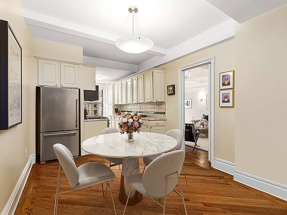 Welcome to 8B at 515 West End Ave - a spacious, light-filled prewar classic 5 room apartment that functions beautifully as a 2 or 3 bedroom home. From the semi-private landing, enter an expansive foyer, with deep coat closet, that opens to a substantial 21-foot living room, anchored by 2 large east-facing windows filling the room with light. The living room easily accommodates a gracious seating area and ample space for a formal dining table. Adjacent to the living room is the very large windowed eat-in kitchen with excellent storage and counter space, a generous separate dining area and 2 east-facing windows.