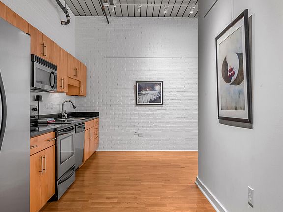 The ultimate urban address is here! This isn't just a condo—it's a statement of style and convenience. Experience true urban luxury in this sleek 1-bedroom, 2-full-bath loft, ideally situated on the first floor facing the quiet community patio. The design is breathtaking: dramatic white-painted brick, defining exposed ductwork, and sophisticated black-trimmed windows complement the rich hardwood floors throughout. The primary bedroom maximizes function with a built-in Murphy bed system, while the spacious walk-in closet boasts custom white shelving for immaculate organization. Functionality meets elegance with two full bathrooms—the hall bath features a luxurious custom tile surround and a deep soaking tub, perfect for relaxation. Enjoy peace of mind with secure key fob entry and the major convenience of a dedicated, numbered covered parking space in the building's attached garage. With your own custom-gated covered patio and direct walkability to Rupp Arena, Gatton Park, and Lexington's finest restaurants, this property offers an unbeatable, high-end downtown lifestyle.