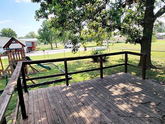 This ranch style home is located on a large fenced lot with playground equipment. 3 bedrooms/ 1 bath with attached garage. Vinyl siding. Quant small town setting.