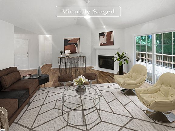 Welcome to a home that's both stylish and comfortable. The neutral color paint scheme provides a calming backdrop, while the fireplace adds a touch of coziness. The primary bedroom boasts a walk-in closet for ample storage, and the primary bathroom features double sinks for convenience. The deck is perfect for enjoying outdoor relaxation. Inside, fresh interior paint and new flooring throughout the home create a clean, updated look. Experience a home that's thoughtfully designed for a modern lifestyle. This home has been virtually staged to illustrate its potential.
