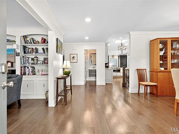 This stunning walkout ranch offers nearly 4,800 sq. ft. of total living space on a beautifully landscaped lot. Completely updated throughout, this home blends modern design with everyday comfort. The open floor plan is ideal for today’s lifestyle, featuring new flooring, designer finishes, and vaulted ceilings that create an inviting, airy feel. The custom kitchen impresses with gorgeous granite countertops, stainless steel appliances, and generous prep space, flowing seamlessly into the vaulted great room complete with a wet bar, fireplace, and access to the covered patio and sparkling saltwater pool—the perfect space for entertaining or relaxing outdoors. The primary suite offers a private retreat with a spa-like bath and an expansive custom walk-in closet. Two additional bedrooms share a beautifully updated hall bath, while a formal living room, dining room, and guest powder room complete the main level. The finished lower level expands your living space with an additional bedroom suite featuring a sauna, two spacious family/recreation rooms, a workshop, and a large laundry area. The open layout provides flexibility for a home gym, media room, or hobby space. Every detail has been thoughtfully designed for function and style—from the stunning interior finishes to the resort-style backyard oasis. Enjoy the ease of move-in-ready living in a highly sought-after neighborhood within the Ladue School District.