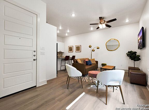 Brand-new 2025 modern townhome offering three levels of stylish, contemporary living in a convenient San Antonio location. This 3-bedroom, 2.5-bath home features high ceilings, an open-concept main floor, and a sleek kitchen with modern finishes. The upper level offers practical, well-proportioned bedrooms and a primary suite with a walk-in closet and modern ensuite bath. A cozy rooftop patio provides a private outdoor space for relaxing or enjoying a quiet evening. With a 1-car garage and low-maintenance design, this new build combines modern style, functionality, and convenience-perfectly situated near shopping, dining, and major thoroughfares.