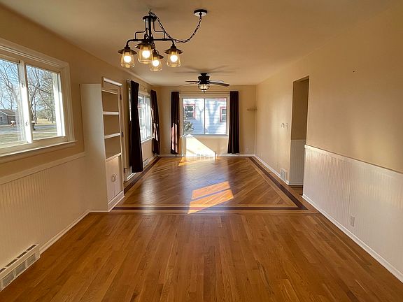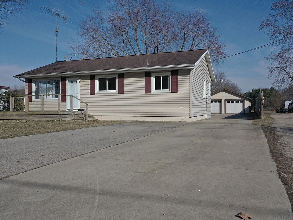 This charming ranch home exudes warmth and comfort. Stepping through the inviting front door, you're greeted by a cozy living space adorned with gleaming hardwood floors that stretch seamlessly throughout. The updated kitchen boasts modern amenities, including stainless steel appliances, contemporary backsplash, and ample cabinet space, perfect for culinary enthusiasts. Down the hall lies a tastefully renovated bathroom, featuring elegant fixtures and a soothing color palette. The bedrooms, generously sized and bathed in natural light, offer sanctuary for relaxation and rejuvenation. A sprawling backyard oasis awaits, complete with lush greenery. The oversized detached garage steals the spotlight, boasting an insulated and heated workshop, providing endless possibilities for hobbies.