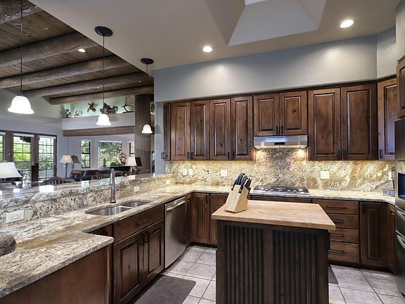 Tucson Association of Realtors Home Tour Winner! Amazing 3 bedroom 3.5 bathroom + office/den with a 3 bedroom/2 bathroom guest house nestled in the foothills of the Catalina Mountains. Well appointed kitchen has knotty alder cabinets, gorgeous chiseled granite counter tops and stainless steel appliances. Private master suite with exit to pool/hot tub in the backyard oasis. Pool bath has a wooden sauna. 2nd bedroom has two murphy beds that can also double as desks. Entertain guests in the large great room or open the French doors and spill out onto the covered patio with firepit and elevated panoramic view past the many saguaros on your 2.39 acres. Don't miss the video and the 3D virtual tours of the main and guest houses under the photos tab. The oversized... The oversized 3-car garage with epoxy floors and freshly painted walls has an abundance of shelving and plenty of room for wood working tools while all 3 bays are occupied. AMENITIES: All rooms- sand blasted wood doors Guest bedroom-large walk in closet, private guest, television/dish wired, fan, mountain views, Second bath-double sinks, tile/glass block shower, drawers and tilt outs in cabinets, skylight, led lighting Office-built in bookcases, credenza, executive desk, file drawers, with built in lighting, television/dish wired, fan Family room- gas fireplace, built in shelves, wired for fan, lighted plant shelf, lighted television shelf, surround sound wired, double door access to patio, wall of window doors, vaulted beam and plank ceiling, mountain and valley views Kitchen- granite with chiseled edge, roll out drawers in all lower cabinets, floating lazy susans (no pole in the middle, always level and easy!), large walk in pantry with custom adjustable shelving, stainless appliances, 5 burner gas range, stainless sink with touch sensor faucet, large breakfast bar, wired for television/dish, custom, moveable work island with wood block top, spice drawer, trash bin, paper towel holder, shelves pull out additional work space, desk area with shelves, skylight, mountain and valley views, under cabinet and under breakfast bar lighting, led lighting Dining nook- French door access to patio, views Laundry- utility sink, cabinets, hobby/sewing desk, equipment closet, wired for television/dish, gas dryer, folding table, skylight Powder room- pedestal sink, led lighting Second guest room- twin murphy beds, shelves custom fit, large closet, fan, wired for television/dish Master bedroom- gas stone fireplace, fan, wall mount television wired for dish, angled for mountain and valley view windows Master bath- jetted and heated spa tub, double sinks, led lighting, built in hamper, drawers, tilt outs, full led lighted separate vanity, large walk in shower with high and low shower heads, access to patio/pool, skylight, mountain views, valley views, television/dish wired. Master closet- large, led lighting, lots of built in shelving Pool bath- four -six person sauna, enclosed shower, stool, sink, heated and cooled, skylight Patio-stereo speakers, gas log firepit with benches, gas grill stub, views, views, views, wired for fans, exposed granite surface, pebble tec pool with water fall, jacuzzi, in floor cleaning system and gas heater, native plantings, low voltage wiring, drip system. In General- wide halls, led lighting In halls, water softener, whole house water filter, utility sink in garage, cabinets, cabinets, cabinets and shelves in garage, 220 wiring, wired for emergency generator power, separate secured yards, code garage door openers, monitored alarm with motion detection, windows and doors, programmable thermostats, wood blinds, security lighting, two service doors in garage, extended length garage, extra wide, concrete garage pad entry, chip sealed drive, exposed granite walks and sitting pads, solid wood front entry door, private courtyard, gated entrance, tile and laminate throughout. Guest house- Master bedroom/bath- large, (fits king size bed and furniture easily) fan, mountain views, walk in closet, skylight, tile walk in shower, double sinks, separate shower and stool area, lots of cabinet space, tilt outs, medicine cabinet, linen closet. Kitchen- garbage disposal, dishwasher, gas range w/self cleaning oven, exhausted hood, lazy susans, under cabinet lighting, large pantry. Second bath- tub with shower, separate shower/tub and stool space, tilt outs, medicine cabinet. Second and third bedrooms- large closets, built in desks and cabinets and drawers, fans. In General- tile throughout, washer and dryer closet space stubbed for gas, wired for television/dish in all rooms, plumbed for softener, extra large outside storage, hard wire alarm monitored, door, windows and motion. programmable thermostat, wood blinds, hall skylights, beamed and plank ceiling in family/ kitchen area, gas stub for gas grill, wired for fans on patio ,lighting on patio, security lighting, large patio with mountain views, gas heat, drip system, native plantings, enclosed, secure yard.
