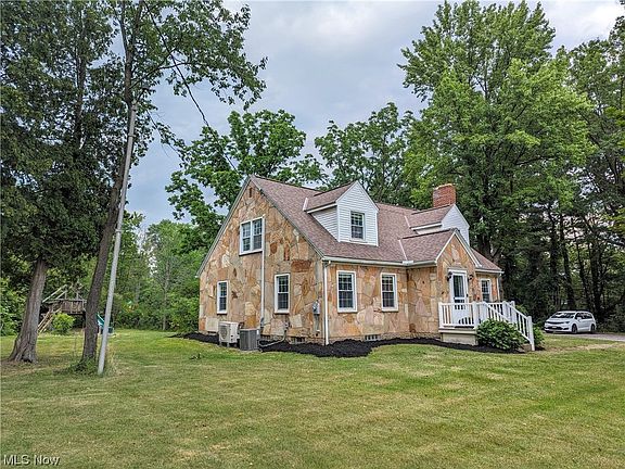 Welcome to 5151 Medina Rd in the Revere school district! This beautiful stone cape cod home is situated on a 2.73 acre wooded lot with a large yard that’s perfect for entertaining, including a fire pit, a detached 2-car garage and a brand new shed w/ramp. This classic home showcases 2 bedrooms and a full bath on the main level and 2 more expansive bedrooms and full bath on the second level. The kitchen hosts beautiful cabinetry with pull out drawers, glass front doors, granite countertops and a pantry, and has a new dishwasher and top of the line refrigerator. The oversized rooms throughout the home are a welcome surprise, all with hardwood flooring. The formal dining room with arched doorway leads to a large living room with a wood burning fireplace. The full unfinished basement has a second fireplace and so much potential for even more living space. Major updates include a new roof in 2020, new garage door 2023, new tankless hot water tank and water softener in July 2023, waterproofing done by Ohio State Waterproofing with a lifetime warranty in 2015, and central air put in the main floor. All appliances stay, including a newer washer and dryer! Easy access to I-77, and just minutes to Summit Mall, Fairlawn and Montrose. Call today for a private showing!