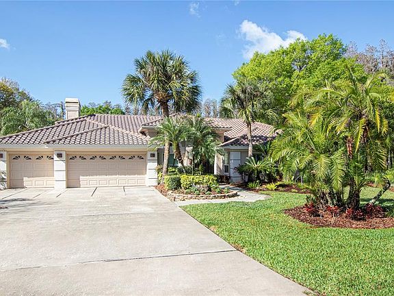 This is a Furnished Home that's upgraded, professionally-decorated and landscaped with a huge pool located in Fairway Village Saddlebrook Tennis & Golf Resort Community that will impress you. This one-story home features 4 bedrooms, bonus room/office, 4.5 baths, a large pool and 3 car garage. It has cathedral ceilings, a formal dining room, a wood burning-fireplace, outdoor grill & wet bar. This home is situated on over half an acre of land with golf course views. You can lounge in an enclosed lanai with a gorgeous heated pool and have a barbecue on a newer outdoor kitchen. You will also enjoy the huge kitchen with upgraded granite counters and solid wood cabinets overlooking the family room, wood shutters in most windows, and newer sliding doors. Looking out of the sliding doors, you will see the golf course from the relaxing screened lanai with a pool. Some additional features include a water softener (owned), hurricane-proof double insulated windows & sliding doors, surround speakers, and an office in the garage. This home is truly move-in ready and comes with tastefully decorated furnitures and an electric golf cart. Saddlebrook has 24-hour guarded gates, 2 of Florida's most picturesque Arnold Palmer golf courses and 45 tennis courts where many professionals played. Fairway Village has a community swimming pool if you choose not to join the Saddlebrook Club but the golf courses and restaurants are open to you. Saddlebrook Club has 3 restaurants, a grill, a DJ who plays his tunes on the weekend for your listening pleasure by the super pool, 45 tennis courts which includes a grass tennis court, and an Academy for golf and tennis. 1 mile from I-75/I-275, 33 miles from Tampa International Airport, close to Tampa Premium Outlets, Advent Hospital & a new Baycare Hospital, VA Hospital, Moffitt Cancer Hospital, USF, Advent Center Ice Rink, Wiregrass Mall, theaters, restaurants, and many more.