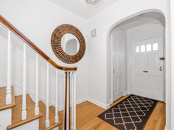 Standout features include: an entry hall; living room with eastern windows; formal dining room; windowed kitchen with pantry closet; and a renovated bathroom with marble accents and Rohl fixtures. The main-floor powder room is also renovated.