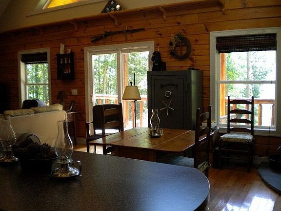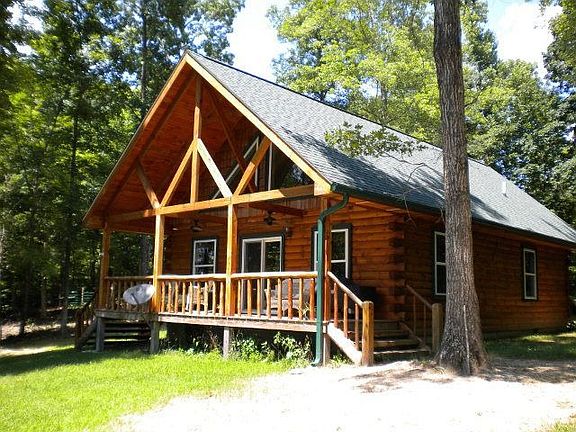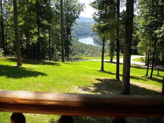 Privacy/Log Home/Lakeview are three reasons to check this home out! This home has everything needed on the main level 2 bedrooms, bath, laundry. The kitchen, dining and living room are open for great entertaining. The upper level(loft)is now used as sitting area, but could be easily used a master bedroom with it's own bath. There is a covered porch both in front and back of home. There is also an 8x16 log cabin style storage building(wonderful for kids or grandkids play area)or separate office space or use to store lawn tools. The owners have installed an underground storm shelter next to the home. With 6.65 acres you have plenty of room to add additional storage or pole barn. Lake access is 1 mile from home.Can even launch your boat!