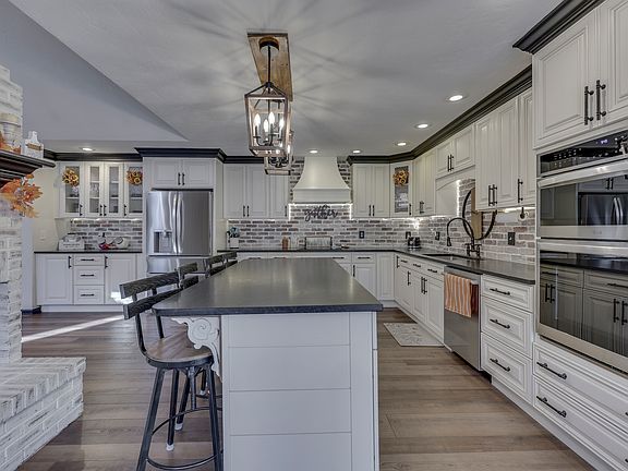 Full finished basementHuge deckNew toilets and vanitiesOver-sized mini-barnGranite countertopsSmart appliancesFull brick two-sided fireplace