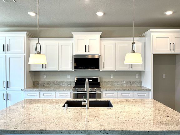 Located across the street from a brand new community park, this home has it all. Walk into your front door and find a beautiful color scheme with grey vinyl plank flooring, white 5" baseboards, and neutral grey paint. To the left is a bedroom with access to a full bathroom with walk in shower and extra cabinet storage. Down the hall you will find an open concept great room. The living area is light and bright with ceiling fan and power drawn to hang a TV. The kitchen has white quartz counter tops, stainless steel upgraded appliances, gas cook top with dual oven, walk in pantry, and lots of cabinets. Just off the kitchen is a spacious dining area with overhead chandelier. The back patio has enough concrete to fit furniture and a grill for entertaining. Upstairs you will find a loft which separates the 2 guest bedrooms from the primary bedroom. The guest bathroom has a tub/shower combo. The primary bedroom has lots of natural light and the on-suite bathroom with dual separate sinks, walk-in shower, soaking tub, and walk in closet. Upstairs laundry room equipped with brand new washer and dryer. The garage is a 3 car tandem garage. The backyard is artificial grass with a spacious covered concrete patio, all lined with trees for privacy. **We do not accept Zillow applications**. Each application requires a NON-REFUNDABLE fee of $45. Qualified applications musth show proof of income of at least 2.5 x's the monthly rent and a credit score of at least 675+. 1 Dog negotiable with added pet deposit and breed restrictions. Please use online guest card to express interest.