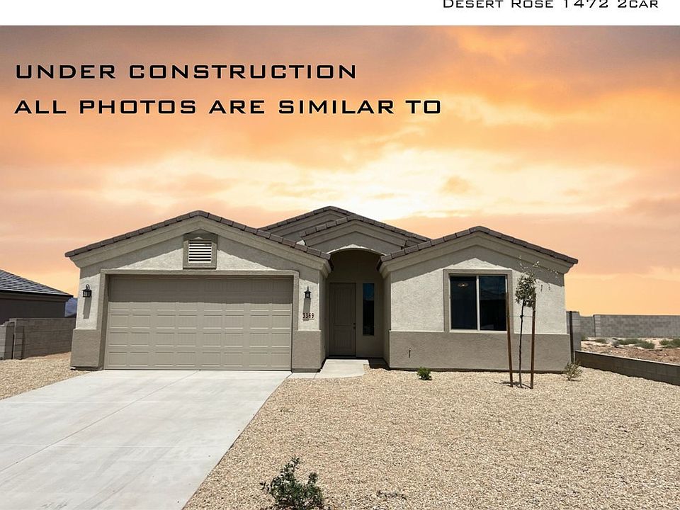 This brand new Desert Rose 1472 2-Car features numerous upgrades, including an open floor plan, split bedrooms, granite countertops, an inside laundry room, and a master suite with a walk-in closet. Exterior features include a tile roof, and front yard landscaping with an automatic watering system. This home also comes with a two/ten-year new Home Buyer's Warranty. Please note that the broker is the owner/seller.