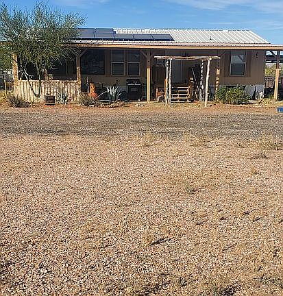 1.12 acres suitable and currently used as horse property. 2nd owner since it was set up. City water. Just off paved road. Modular home has central air. Chain link fence on back half of property. Back quarter of property is currently used as a warm up arena. New pro-panel roof and solar panels installed 6 months ago. New T-11 skirting all around. Outside of home painted within last 2 years. Gravel on top part of property. New flooring in living room and all bedrooms. Many interior upgrades.Two work sheds on property. No HOA. Located in Sun Valley Acres, lot 4.