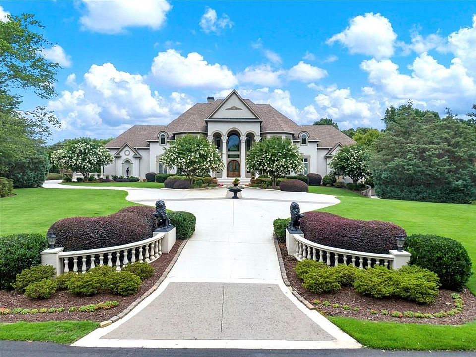 UNBELIEVABLE EXECUTIVE ESTATE: Impressive from every vantage point, 5153 Legends Drive is a dream home. 6 BD, 5/2 BA with every amenity and a view of both the Signature 6th hole of the Legends Golf Course and an exquisite European style pool, the acre private retreat is an extraordinarily rare find. A grand front elevation and sweeping 20+ foot ceilings of the great room stun with opulence and elegance. Entertain in the amply-sized dining room, or gather informally in the gourmet kitchen and keeping room, or in the terrace level bar and wine room! Steps from the front entrance is a gorgeous home office with full judge’s paneling and coffered ceilings. The main floor owner’s suite includes a spa bathroom, spectacular custom closet, a private sitting room, and is adjacent to the home’s theater room. Of the home’s five additional bedrooms,(accessible by elevator or stairs) the terrace level has a second, equally stunning, and large en-suite, as well as living and dining areas that open to the pool. Upstairs, find lovely guest rooms, additional office space, and ample common area for multi-use. Enjoy plenty of parking in the circular drive, or in one of four garage bays.