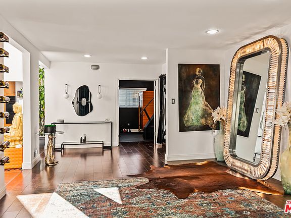 Welcome home to this stunning Mid-Century Modern retreat, perfectly situated south of the Boulevard! Step through the custom double doors into a breathtaking atrium featuring soaring 14-foot ceilings an ideal space for entertaining. Flooded with natural light, this impressive room showcases 36-inch-high double-pane windows, multiple skylights, and a dazzling Swarovski crystal chandelier.Behind you, the private primary suite offers a custom walk-through closet and a luxurious en-suite bath. The chef's kitchen boasts granite countertops, double wall ovens, stainless steel appliances, and a breakfast bar, seamlessly connecting to a cozy sitting area with a gas ice-stacked stone fireplace.Down the hall, you'll find two inviting guest bedrooms, perfect for family or visitors. Step outside to your own private oasis a large sparkling pool surrounded by terraced landscaping, a covered patio ideal for lounging or morning coffee, and an upper hilltop deck with sweeping city light and treetop views.Additional highlights include a spacious driveway, a two-car attached garage with a Tesla charger, and proximity to popular shops, restaurants, Whole Foods, Trader Joe's, Ventura Boulevard, and the 101 freeway.Experience the best of Woodland Hills living in this exceptional Mid-Century Modern masterpiece!