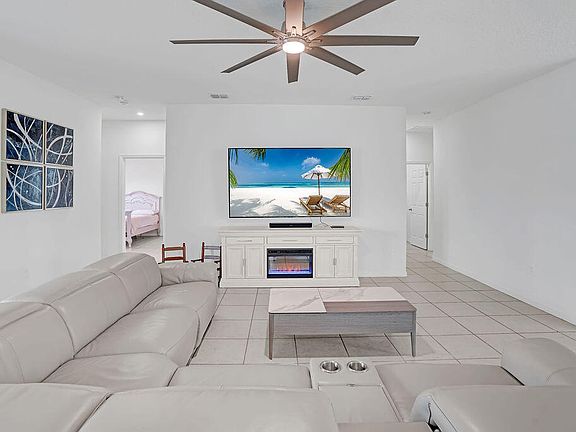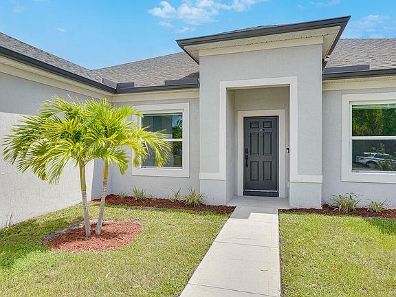 Welcome to 5154 NW North Macedo Blvd; an exceptionally designed five-bedroom, three-bathroom single-family home with IMPACT WINDOWS featuring the sought-after Charlotte floorplan from the Cornerstone collection. Built in 2022, this nearly new residence offers 2,337 square feet of thoughtfully laid-out living space, blending modern construction, high-end upgrades, and timeless design in one of Port St. Lucie's most desirable neighborhoodsa''St. James. From the moment you arrive, the home makes a welcoming impression with its large, recessed truss-covered front porch; perfect for enjoying your morning coffee or creating a charming outdoor seating area. Inside, you're greeted by a formal dining room on one side and a versatile den on the other, setting the tone for a home that values both elegance and practicality. While officially a four-bedroom layout, the den has its own door and window, easily functioning as a true fifth bedroom, home office, or flex space to suit your lifestyle.