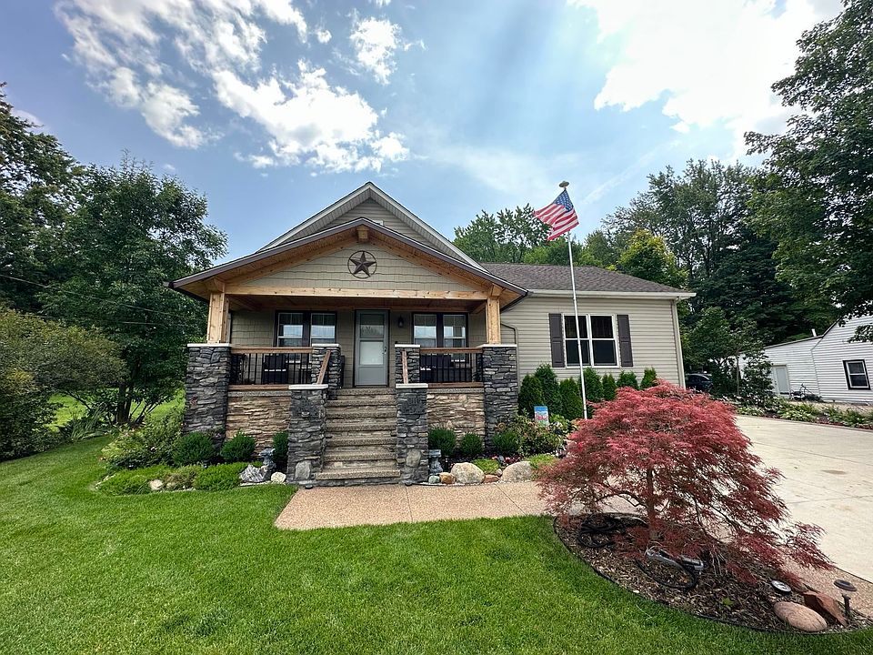 Buyers looking for room to roam this private 1/2 acre is what you are looking for, fenced yard & mature trees. Sellers have freshly painted throughout, put crown molding in rooms, changed doors, kitchen updated with plenty of cabinet space & granite countertop, tile backsplash, dishwasher, built in microwave. 9 ft ceilings, lots of windows for natural light. Seller has insulated home top to bottom, high efficiency home bills are minimal. Master bedroom has large walk in closet, full tile bath w/jacuzzi. 2nd bedroom is 22x13, walk in closet, unfinished upstairs, approx 400 sq ft for storage or finish for bedroom, study, bonus room. Detached garage with 1 out bldgs to store riding lawn mower, etc.And a open carport ,and wood burning stove for heat. New Driveway ,Front Porch,