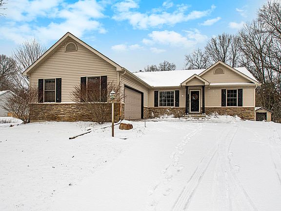 Welcome to this stunning 5-bedroom (possible 6) ranch-style home, 3 full baths & unbeatable location near Simonton Lake! Nestled on nearly 3/4 acre in the back of subdivision, this home offers the perfect blend of space, comfort & convenience. Step inside to an open-concept layout featuring a spacious dining area, a cozy living room w/gas fireplace & eat-in kitchen. The kitchen also offers access to the deck through a sliding door, perfect for outdoor entertaining. The split-bedroom floor plan provides privacy w/a luxurious master suite boasting a vaulted ceiling, dual sinks, a jetted tub, a walk-in shower & spacious walk-in closet. Two add'l bedrooms on main level share a full bath in the hallway & convenience of main-level laundry adds to the home’s appeal. The finished lower level offers even more living space w/large family room, two bedrooms w/egress windows & built-in bunk beds, plus an addl room that could serve as a guest rm/office/workout rm. A beautifully tiled full bath completes the lower level. This home has been freshly painted, professionally cleaned, and is move-in ready! The HVAC system is only a year old & the house is wired for a network, making it ideal for those working from home. There is a dual septic also! Enjoy the peaceful yet convenient location close to the toll road, shopping, restaurants, schools, and Michigan. Don’t miss out on this exceptional home!