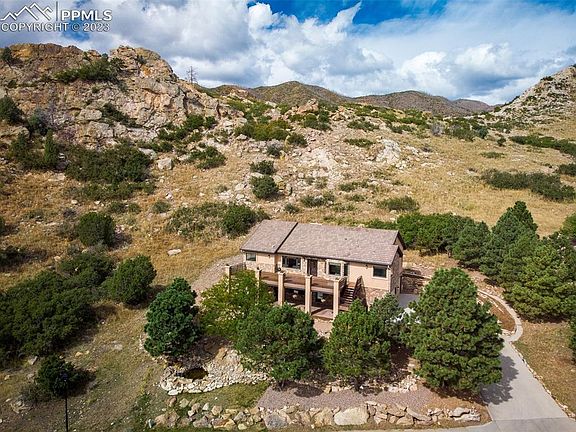 **Rare Gem in Colorado Springs – Westside Mountain Shadows Exclusive!** Seize the unique chance to own in one of Colorado Springs' most coveted locales – the Westside Mountain Shadows. Properties in this enclave are seldom available, and this custom-built treasure, erected in 2013, is the epitome of luxurious mountain living. Perched on a sprawling 1.75-acre lot, the home offers breathtaking unobstructed panoramas – from the iconic Kissing Camels to sweeping cityscapes and majestic mountain horizons. A lavish water feature meanders through the front yard, culminating in a serene pond and cascading waterfall, setting a tranquil tone upon arrival. Inside, the details speak volumes. Impeccable hardwood floors merge seamlessly with the finely crafted tongue-and-groove ceiling, setting an ambiance of timeless sophistication. The gourmet kitchen is a culinary enthusiast's delight, while the luxury master bath promises a spa-like retreat. Three commodious bedrooms grace the ground level, each offering captivating views of the landscape. Nature enthusiasts will be thrilled by regular sightings of big horn sheep and wild turkeys, while those with a flair for hosting will find the expansive dining room, front, rear, and lower decks the perfect venues for unforgettable soirees. As evening descends, gather around the imposing gas fireplace or adjourn to the wet bar for a relaxing beverage. This Westside Mountain Shadows jewel is more than a home – it's an entertainer's dream, a sanctuary, and a rare opportunity. Secure your piece of Colorado Springs paradise today.
