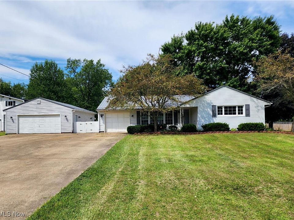 If you enjoy working outdoors or spending time in the garage, this property is must-see. Nestled near the end of a quiet dead-end street, this welcoming 3-bedroom ranch sits on nearly 0.73 acres and features both an attached heated one-car garage and a heated two-car detached garage—perfect for year-round projects. A concrete patio between them offers a practical yet inviting space to enjoy. Inside, solid 2-inch hardwood oak floors span most of the home, beautifully paired with painted oak cabinetry in the kitchen and bathroom. The partially finished basement adds character with a spacious recreation room and a billiard table—which will convey with the home. Additional highlights include a well-equipped laundry room with generous cabinetry, a utility sink, and a washer and dryer that stay. Recent updates include a new butcher-block countertop, stainless-steel sink, Delta kitchen faucet, and tiled backsplash in kitchen July 2025, new vinyl flooring in the morning room July 2025, hot water tank and sump pump replaced with new in January 2021, water softener replaced with new in October 2023, and both laundry machines (washer and dryer) replaced with new in the summer of 2023. Exterior Security Lighting surrounds the home, and the Ring Doorbell at the front entrance offers added peace of mind. The six-year-old metal roof ensures durability and low maintenance, while the shed, with electricity, provides even more flexible workspace. Schedule your showing today—this exceptional property won't last long!