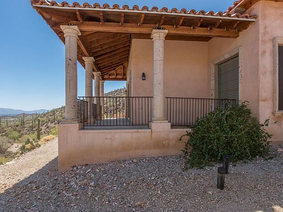 Southwestern Ranch sits on top of a hill overlooking the more than 3 acre lot with traditional desert landscaping. The home offers 4 bed, 2.5 bath, withapproximately 3540 square feet of living space, and an attached 3 car garage. Pull up to the a grand entry way with arched rod iron door with glass inlay. Step inside tofind high ceilings, stone tile flooring, see through fireplace, custom built ins, walls of windows, and generously sized bedrooms. The eat in kitchen features amplestorage, huge center island, granite counters, recessed lighting, and plenty of prep space. The master suite has a luxury spa like bath with dual sinks, granite counters,columns, and walk in closet.