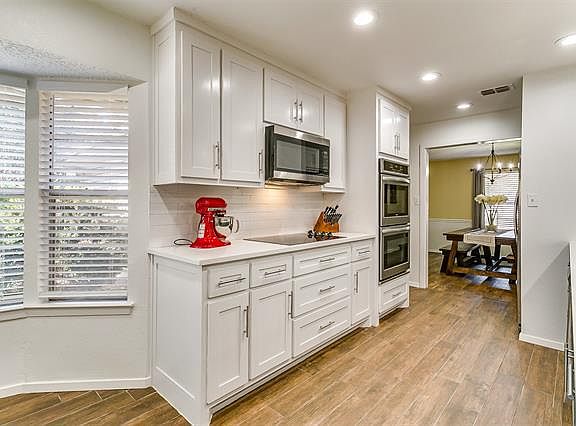 This sprawling Wedgwood ranch is the one you have been searching for! A newly renovated kitchen is the heart of this home. Shaker cabinets, quartz counters, basin sink, double ovens plus electric cooktop, dw and built in microwave. The pantry and laundry is located just off of the kitchen. Master suite is generously sized with split vanities and closets for each owner plus soaker tub and sep shower. Guest bath includes dual sinks, oversized vanity and shower tub combo. Low maintenance wood look tile throughout this home. Family room includes retro wet bar. Formal dining will accommodate a large table and don't miss the additional flex space leading to backyard. Mature trees adorn this large lot. Welcome home!