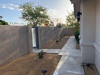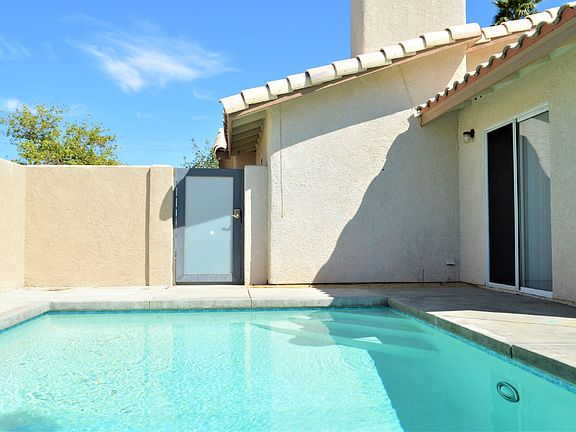 The protected La Quinta Cove has some of the finest views of the Santa Rosa Mountains and is close to Old Town La Quinta, La Quinta Resort & Spa, Indio horse and golf communities, Indian Wells Tennis and dining and Palm Desert's shopping and cultural amenities. This corner, wall-enclosed home with a private courtyard has been recently updated and features 3-bedrooms, 2 bathrooms, and an unheated, in-ground pool. It is designed with an open floorplan and a large kitchen where meals can be enjoyed in the breakfast nook with a bay window view or at the breakfast counter. The brand new kitchen also boasts a large pantry and has access to the 2-car garage where the washer and dryer are located. The main suite has a walk-in closet, a double-vanity and a combined tub/shower in the main bathroom, and a tub/shower combo is in the guest bathroom as well. Other highlights include Tesla solar, an updated, contemporary-tiled fireplace in the living room, ceiling fans thruout, and a sense of privacy in the walled-in outdoor spaces where views abound, and a pad in the backyard near the pool area that is great for entertaining or quiet relaxation. There is propane gas for utility, and low electrical costs provided by the Imperial Irrigation District. Move-in costs include rent, security deposit of one month rent, portal set-up fee of $100, an application fee of $50 per adult over 18. Please call for a showing PMI-CV, DRE #01992806