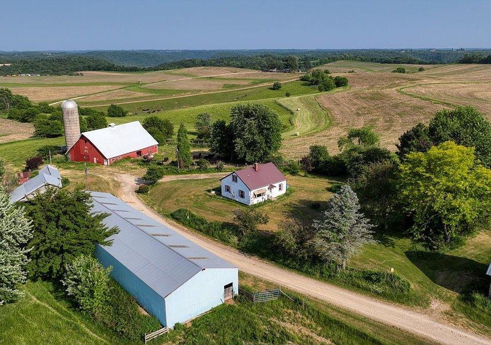 Beautiful 183-acre farm homestead for sale located off a country road, down a quiet, private driveway in the heart of the driftless area. This was once an operational dairy farm with several types of animals raised here and there are several different barns/buildings to house them. The buildings consist of a dairy barn with hay storage, chicken coup, small animal house, corn bin, garage/machinery/cattle shed, tobacco shed and a 4-bedroom farmhouse. There are several mature trees and perennial gardens as well as a large lawn area. The land lays high on the ridge and is a nice mixture of pasture/cropland and wooded lands for excellent hunting. Call today for more information or a private tour. Don't miss out, large farms are a rare find: A diamond in the rough!