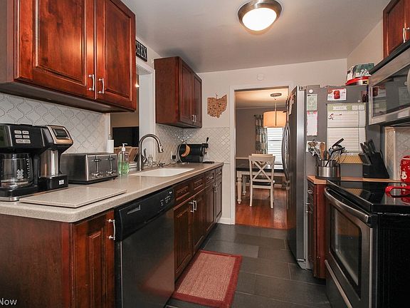 Welcome Home! This Lyndhurst cutie is ready for you to unpack your bags and move right in. Located on a large lot this home features ample space to enjoy. The first floor has nice flow, with the standout being the large family room at the back of the house. The half bathroom is off this room. While the family room is carpeted, the living and dining rooms feature beautiful hard wood floors and allow for great natural light. The galley kitchen features stainless appliances, tile backsplash and an eat-in area. The second floor has four bedrooms and a great bathroom with tiled shower surround. The basement's finished side has new carpet and chair-rail molding. This is great space for watching tv or a Child's play room. Other features are a one care attached garage, central a/c and a very large fenced in backyard with a cement patio located off the family room. This charmer is in a great location, close to everything. Don't miss out! Back on the market at no fault of the Home or Seller.